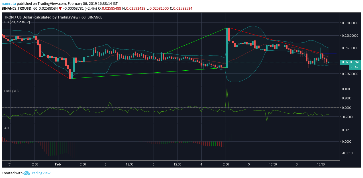 At the time of press, Tron was valued at $0.0256 with a market cap of $1.71 billion. The coin registered a 24-hour trading volume of $233 million with a dip of 4.53% over the past day. The coin was falling from the past few days as it noted a fall of 7.40% over the past week and is still falling by 0.68% over the past hour.