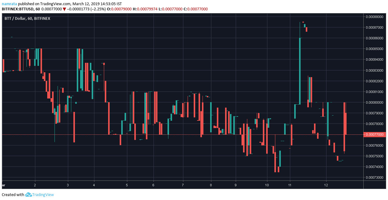 BTT, at press time, was valued at $0.0007 and reported a 24-hour trading volume of $39.83 million. However, the coin fell by 5.64% over the past day and has since been trying to recover. The coin was undergoing market correction at press time and was up by 1.06% over the past hour. Over the week, the token ranking 1,783 on CoinMarketCap list reported a fall of 1.20%.