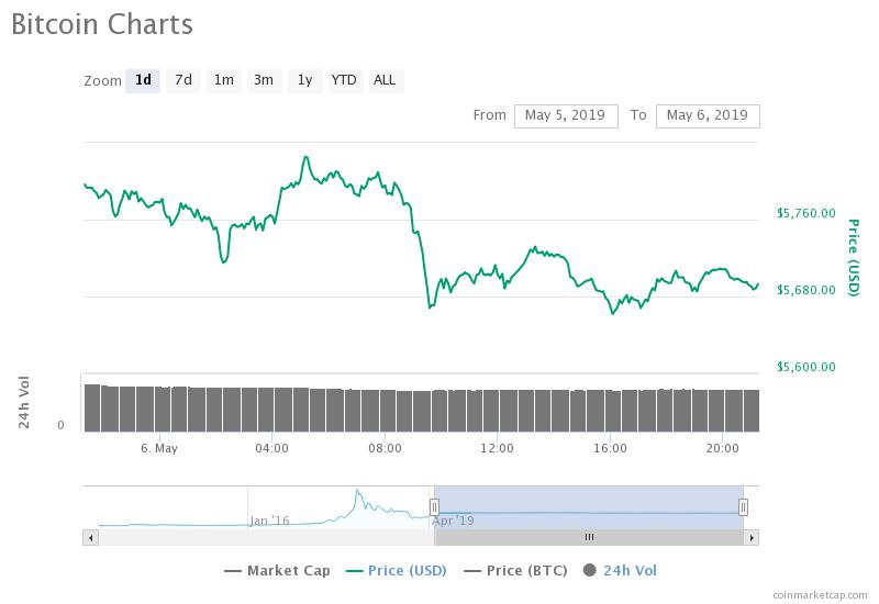 The bitcoin price has dropped by nearly two percent against the U.S. dollar in the last 24 hours (source: coinmarketcap.com)