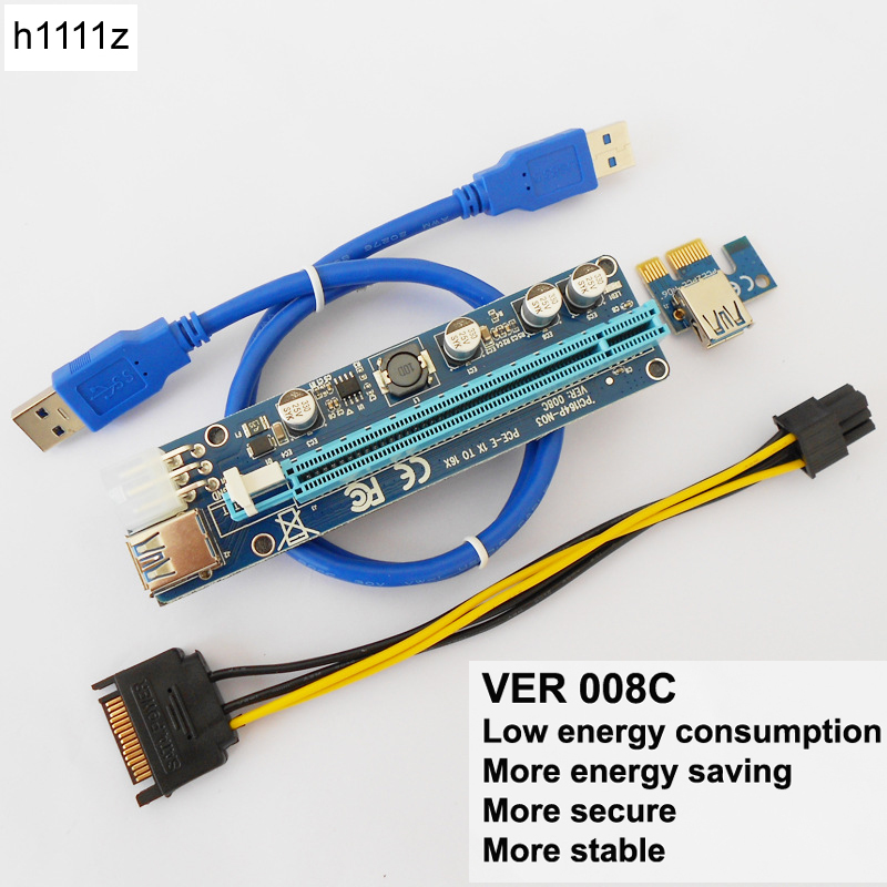 Upgrade Edition VER008C Riser PCI-E 1x to 16x Riser Card LED USB 3.0 PCI-E 6pin Power for BTC Asic bitcoin Miner Antminer Mining