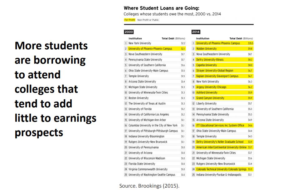 Students are making a losing gamble when they borrow money to attend many colleges and universities. | Source: Harvard University and Peterson Institute for International Economics/St. Louis Federal Reserve