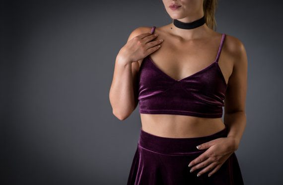 Velvet bra top, soft and luxurious available in three different colors of velvet: black, mauve, blue.