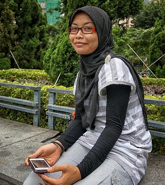 Waiting for her friends…