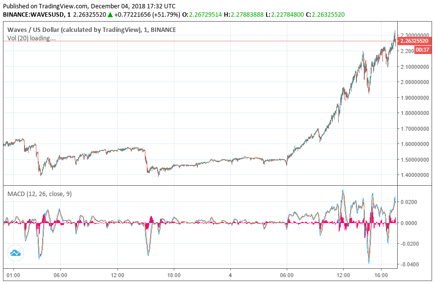Waves, a token platform with the web developer generation in mind, has seen its base token rise nearly 50 percent over the last 24 hours amid a generally-stagnant crypto market, making analysts scratch their heads – what could be driving this?