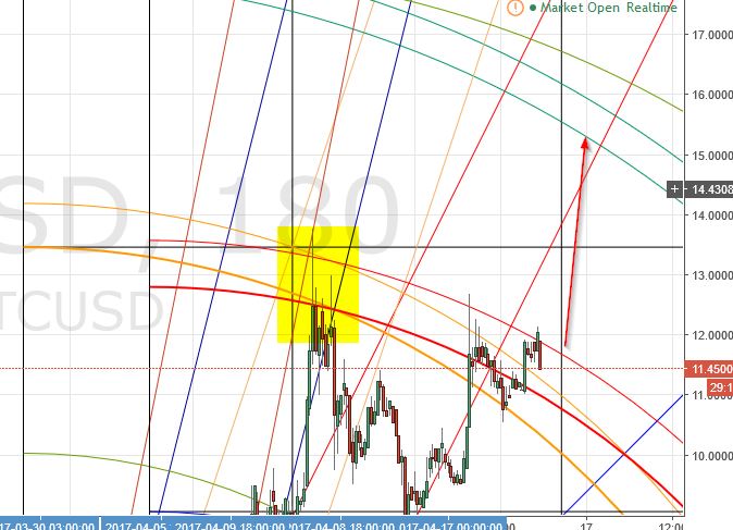 Litecoin is another coin that I found multiple setups acting price simultaneously. I changed the colors of the longer term setup’s 3rd arc pair to yellow, so they could be easily differentiated from the 1st arc pair of a shorter setup.