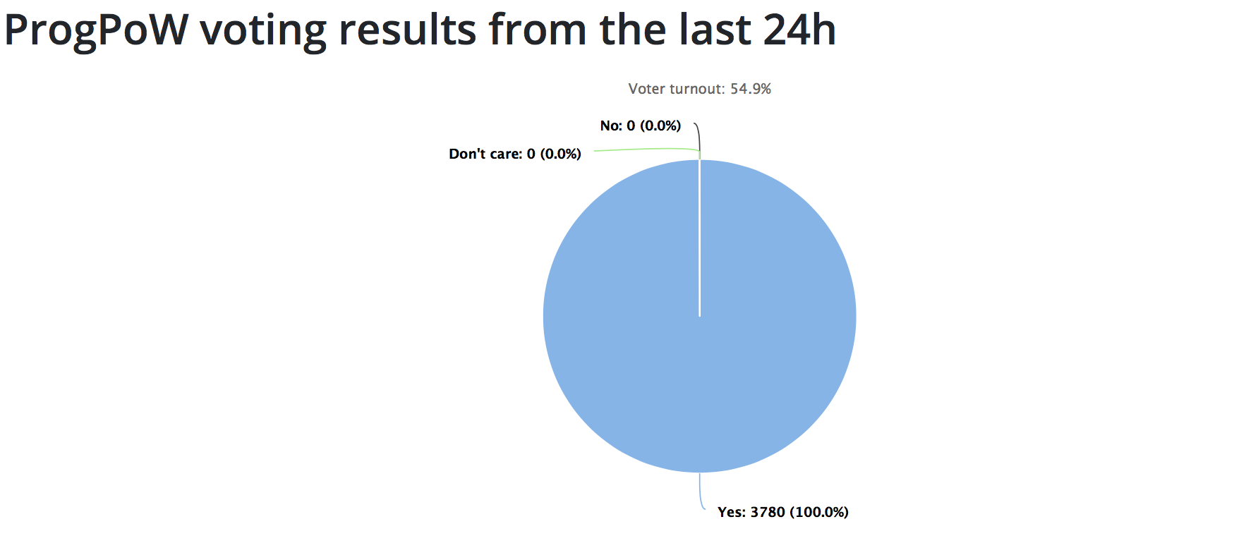 The is even more incredible because we have 3 million eth voting for ProgPoW and only Gnosis – which is a dapp and has nothing to do with – voting against with circa 200,000 eth.