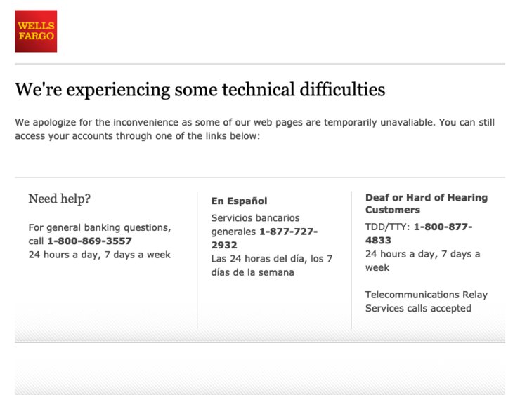 While Wells Fargo responded speedily to the complaints of its customers, the affected services remain inaccessible after more than 2 hours the bank confirmed an outage.