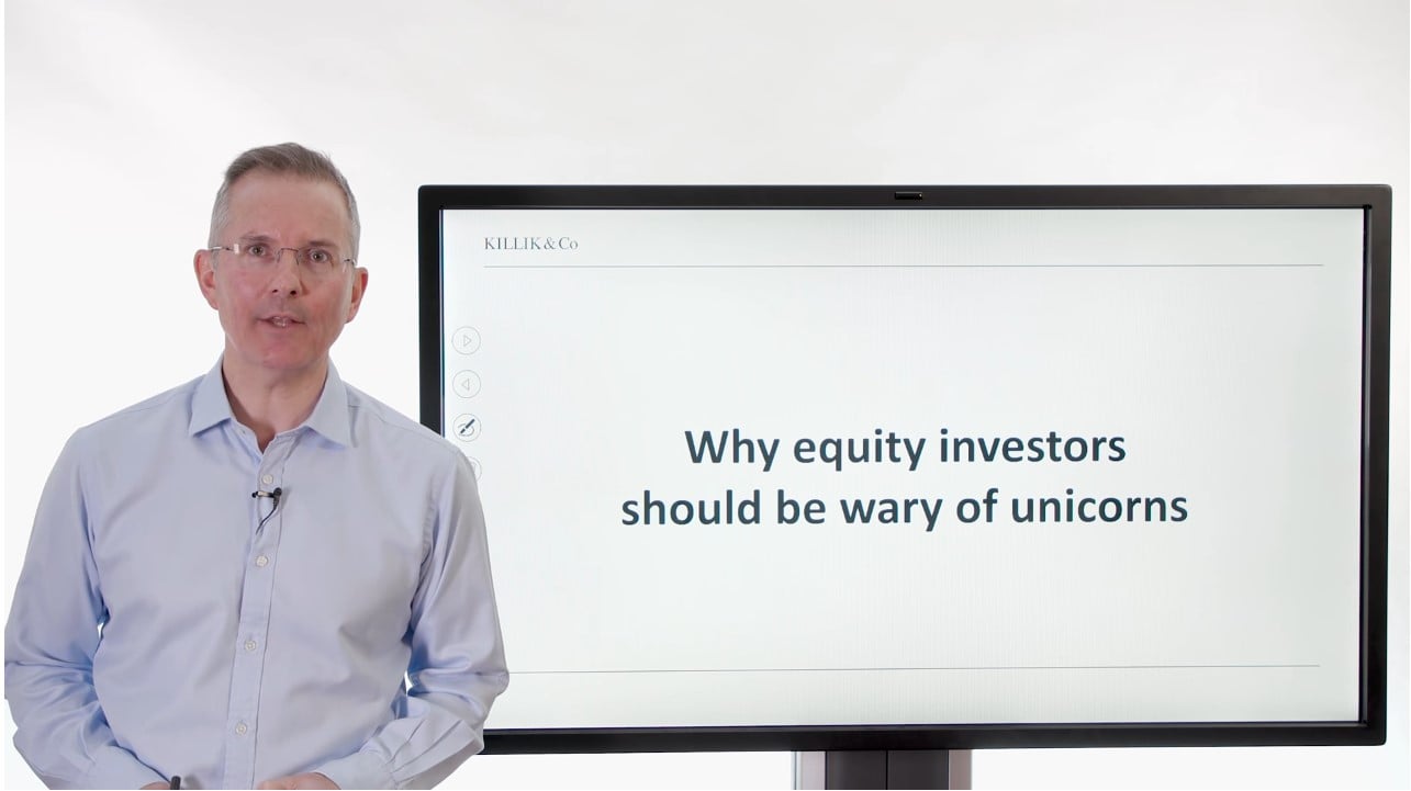 Welcome to this Killik explains finance. Video this week a topical turn that’s doing the rounds in financial markets unicorns and I’m mean to suggest. That equity investors should be wary of them particularly if their new equity investors. Why. Well first of all what’s the background. So what do we got here. Unicorns are private companies with valuations of a billion dollars or more. That’s the loose definition. And there are an awful lot of them out there. Why. Thanks to the world of off patent as I call it private equity venture capital. Sovereign Wealth Fund finance. In other words there are places where companies can now grow fast and beg away from public markets. And that’s the space if you like a flood of them are now coming to public markets for different reasons. One of them being they want to raise a really serious amount of capital for further growth and expansion public markets are one way to do it. So you’ve got a flood of household names I’ll mention if you in a moment coming to the market looking to raise capital again from the private space into the public space you’d like the question is are they an investment opportunity for private investors now in some senses you’ll have no choice. These things are monsters. They are big companies. So indexes and index funds will pick them up naturally and you’ll get an exposure through your pension for example whether you like it or not that’s not my question. Jim went much choice about that.