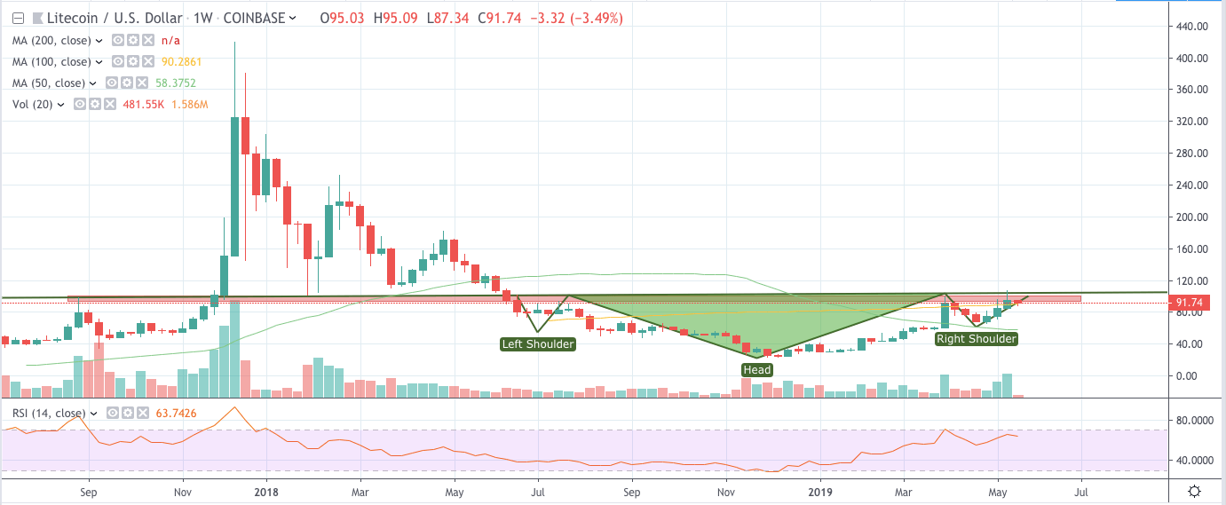 The Litecoin price has spent the past year building a massive inverse head-and-shoulders pattern. | Source: TradingView