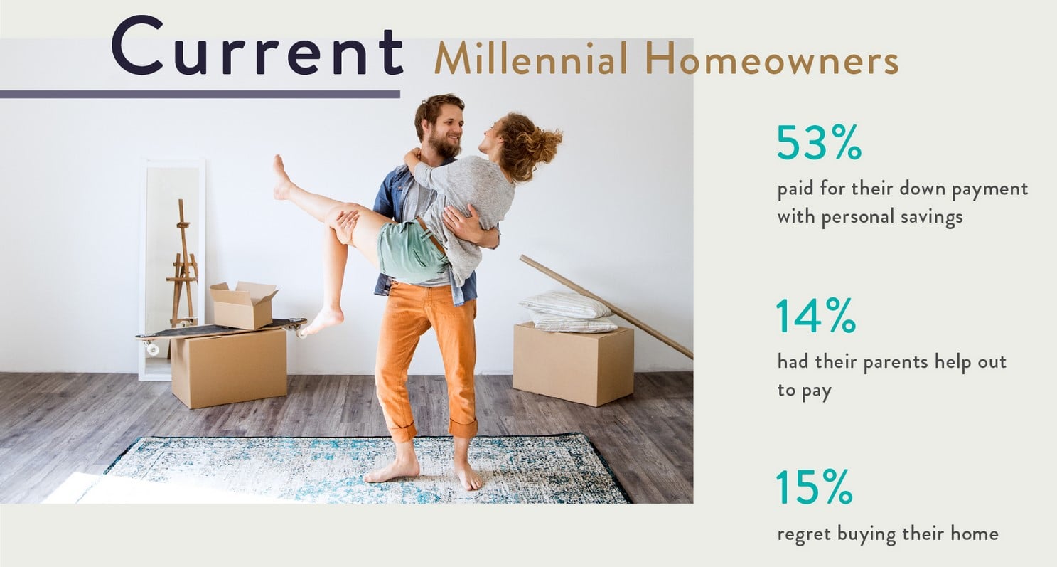 For those who have already purchased a home, the study revealed that only 15-percent regret purchasing their home. The majority, roughly 53-percent, said they paid for their down payment with their own personal savings, while 14-percent received financial assistance from their parents. The biggest regrets accompanying home ownership include fears about making mortgage payments, purchasing a home too soon, buying a house that feels too small, and wishing they had put more down up front.