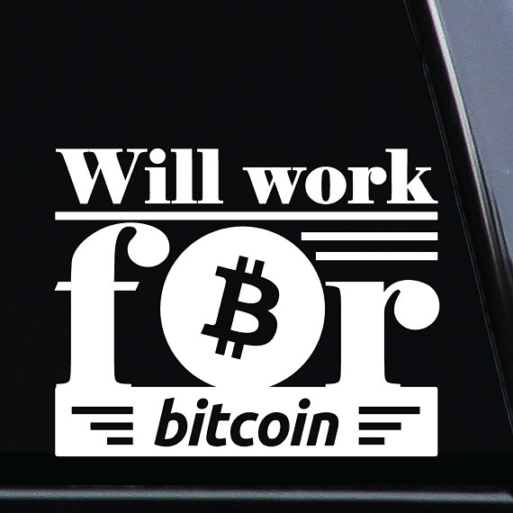 Will Work For bitcoin (Design #1) Vinyl Die-Cut Decal (SKU: CD-CRYPTO-10009)