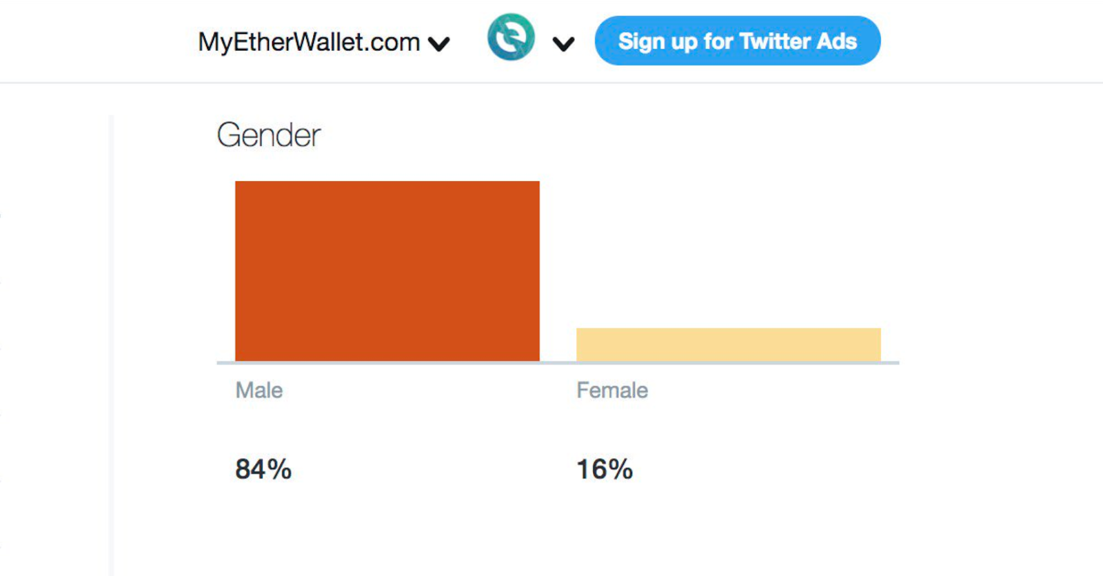 In Oct. 2017, a conducted by Reddit user , found that 96 percent of Ether users are men, and reported that 84 percent of their wallet holders were male.
