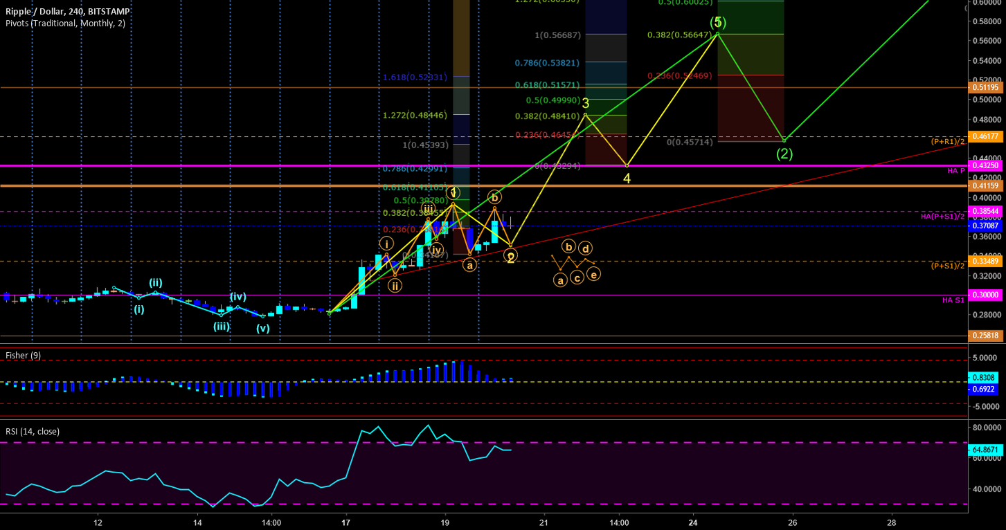 In theory, Wave 2 of a reversal can retrace nearly to the start of Wave 1, the so-called disbelief wave, but I do not see potential for that with the whole market currently on a run. If stays above 4k for another day a lot of traders will see that as a confirmation of the reversal and Ripple will follow the crowd as it still is coupled with price action.