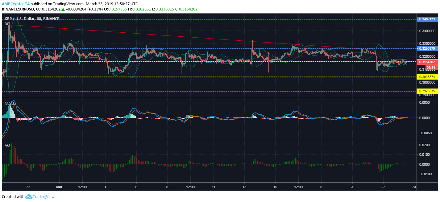 The one-day chart showed a dominant downtrend that was progressing since May 2018. It extended from $0.9027 to $0.3257. The support at $0.2587 was holding XRP from dipping further below. Long-term resistance points were $0.5836, $0.6880, and $0.9027.