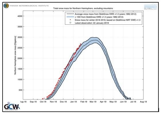 With the Finnish Meteorological Society just posting this chart last week, we can’t help but think we are in a new phase, check out the total snow mass, well above multi-decadal averages: