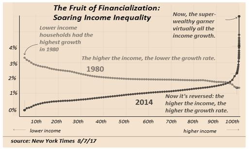 With this idea in mind we are pretty certain that UBI will come to the forefront this year and the years to come. Universal Basic Income will become the central banks acquiescence to the commoners to subvert the torch and pitch forks. Although the yellow vests in Europe continue to impede and cause distress for the elites. The western media blackout of all this is a testament to their will to squash any contagion. What do we mean by income inequality driven by years of Central Bank handouts…this next visual should help: