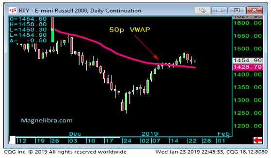 The Russel Index continues to magnet the 50 p Vwap: