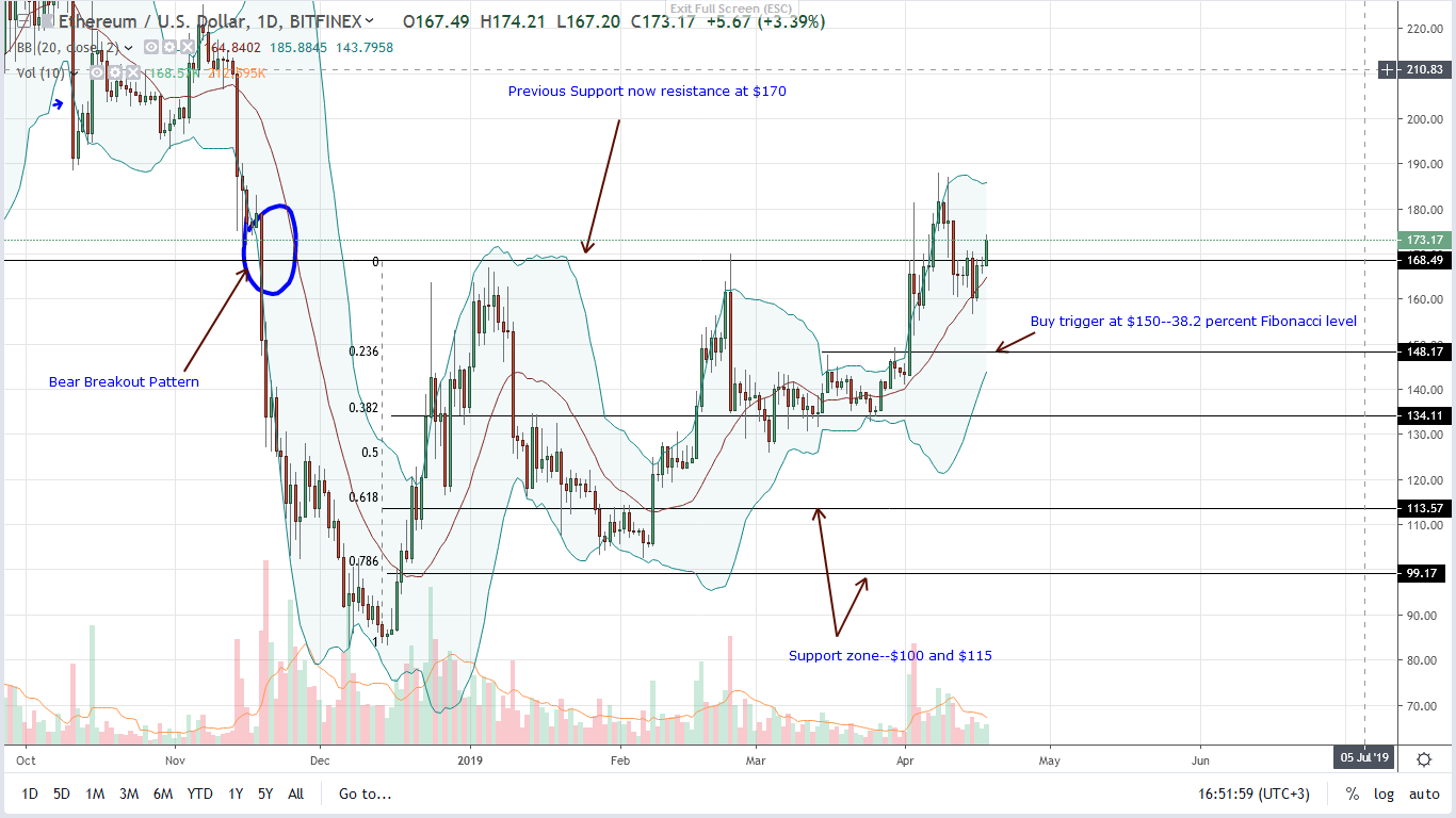 Notice that (ETH) prices for the second time this month is above $170, and that means bulls are back in control reversing losses of Q4 2018.